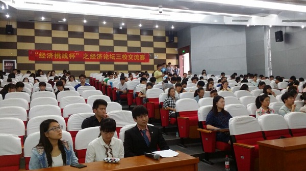 5月10日,由校团委主办、qmh球盟会亚博网址承办的第四届大学生经济论坛校际交流赛在翡翠湖校区建筑艺术馆报告厅拉开帷幕,中国科技大学胡海洋博士、安徽大学常伟老师、qmh官网李静老师、顾安祥老师、中国科学技术大学代表队、安徽大学代表队、球盟会qmh代表队共300余名师生观看比赛。