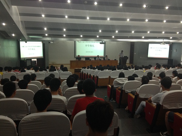 8月29日,学院2015级本科生开学典礼暨专业介绍会在建筑艺术馆负一楼报告厅隆重举行,校教务部质量管理与评估办公室主任张本照,学院党委书记刘峰、副院长万伦来、党委副书记胡晓浩,院长助理、各系系主任和教师代表、全体辅导员及新生300余人参会。