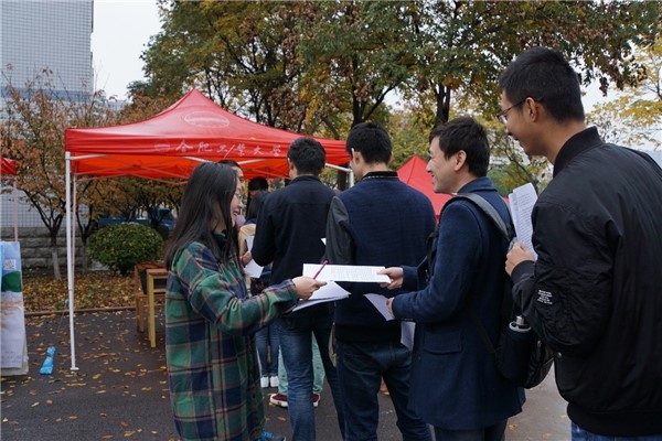 2015年11月22日,qmh球盟会亚博网址研究生会权益部在球盟会qmh翡翠湖校区第三食堂门口,对网络金融理财防骗相关问题进行了问卷调查。