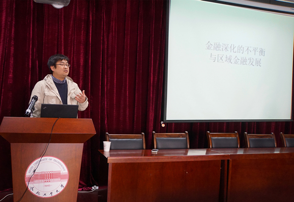 在短暂休息之后,第五场报告开始,张斌老师以“金融深化的不平衡与区域金融发展”为题进行演讲,阐述了金融深化的内涵及度量方式,提出我国区域金融发展的不平衡,倡导区域金融合作,构建区域新金融,推进金融一体化发展,并运用经济学知识进行讲解,条理清晰,通俗易懂。