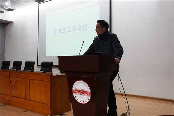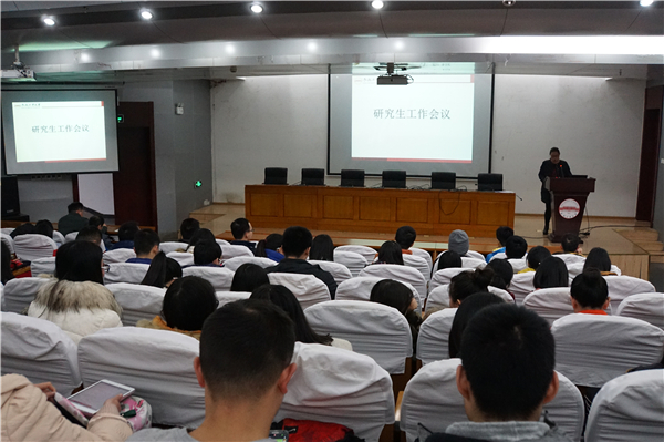 会议开始,许红梅老师首先就研究生考风考纪问题做了重点强调,向同学们普及了考试作弊相关的法律法规,讲解了一些学校对考试作弊行为的认定和处理办法,告诉同学们应当树立诚信意识,认清考试舞弊行为的危害性和不可弥补的严重后果,希望同学们能自觉诚信对待考试。之后,为加强学生安全意识,许红梅老师又进一步对冬日安全问题做了说明,要求同学们重视交通安全、饮食安全、学习室和宿舍安全,不断提高安全防范意识,创建和谐平安校园。随后,晋盛武老师从研究生学习问题出发,对研究生学习状况、行为规范进行分析,要求同学们在研究生阶段要认清自己的职责,在学习方式、学习习惯上要认真倾听导师意见,学会发现问题、提出问题并解决问题,不断提高学习技能和学习效率。最后,刘峰书记对此次会议做了总结,再次强调了考风考纪问题和学生安全问题,并要求研究生认真思考下一年规划,拟好自己的人生路线,树立一个正确的人生目标。同时,刘峰书记还提出在学习生活中要处理好师生关系、同学关系,营造良好和谐的学习生活环境,也为未来走上社会打下良好的基础。