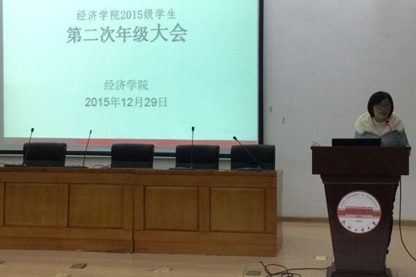 12月30日中午,qmh官网在建艺馆报告厅召开了第二次年级大会,大会由2015级辅导员但泱泱主持,qmh官网2015级全体271名本科生参加了大会。