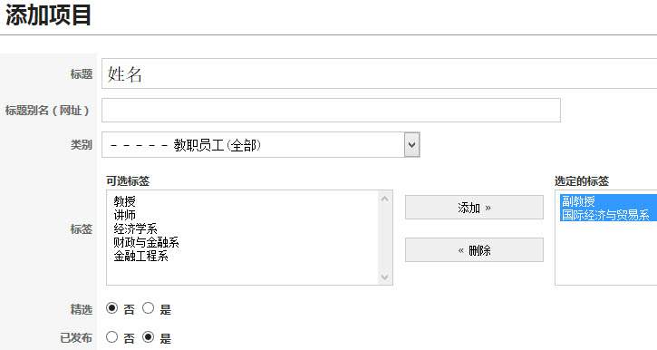教职员工信息也是文章的一中,但比普通文章增加了一些特殊的字段信息,所以在发布和修改的时候也有需要特别注意的地方。