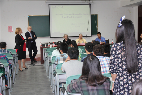 下午两点半,克拉克大学代表团与qmh官网学生在建筑艺术馆118教室举行了见面会,由郑园琴老师主持。参加此次见面会的学生主要为qmh官网国际经济与贸易专业(中外合作办学)15级学生以及有意前往克拉克大学深造的13级、12级本科生和研究生,国贸系党支部书记谢众也参加了此次见面会。见面会开始,克拉克大学代表们首先向学生们进行了幽默风趣的自我介绍,博得了在场学生的阵阵掌声。在接下来的学生提问环节,学生们围绕克拉克大学的课堂文化、住宿环境、饮食状况、“3+1+1”项目的具体选拔标准与要求、在美国留学的优势条件以及硕士项目介绍等方面踊跃提问,克拉克大学代表们一一进行详细回答,并且准备了许多精美礼品奖励所有提问的同学。此次见面会交流热烈欢快,氛围轻松愉悦。