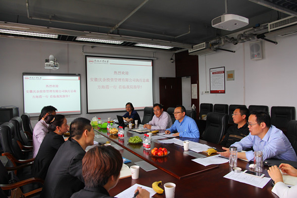 2016年5月18日上午9点,安徽庆余投资管理有限公司执行总裁方海霞一行高管来学院交流,qmh官网院长吴华清、副院长晋盛武、张先锋以及各系主任在学院723会议室进行了接待。吴华清院长首先代表qmh球盟会亚博网址对方海霞总裁一行的到来表示欢迎,随后双方商讨决定合作举办“湖滨金融论坛”,并就论坛主题、地点、流程等细节问题进行了深入细致的讨论,形成了初步方案。双方还就共建“量化金融实验室”、成立实习基地等合作事项进行了沟通和交流,并在人才培养、学科专业建设等方面开展立体式合作达成了共识。