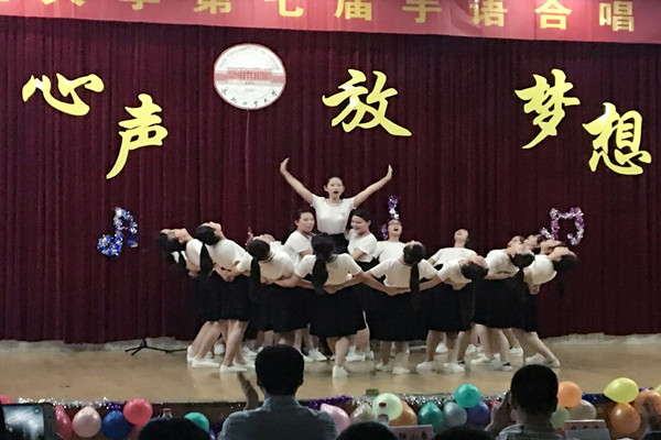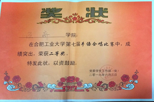 2016年6月3日晚,球盟会qmh“手传心语,放飞梦想”第七届校园手语合唱比赛在翡翠湖校区综合楼301正式落下帷幕。来自不同学院的13支参赛队伍参加比赛,qmh球盟会亚博网址由23人组成的参赛队伍在比赛中表演曲目《最初的梦想》,并获得总成绩第三名和“最佳创意奖”的荣誉。