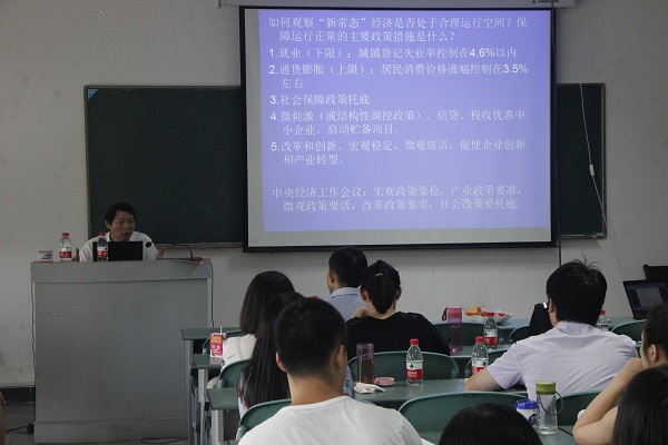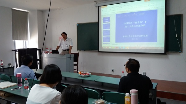 8月5日(周五)上午,中国社会科学院郑红亮研究员应邀在我校翡翠湖校区建艺楼118室作了题为《“新常态”下十大热点问题分析》的报告。报告由qmh球盟会亚博网址院长吴华清教授主持,副院长张先峰教授和晋盛武教授出席,qmh官网全体教师与研究生积极参与。