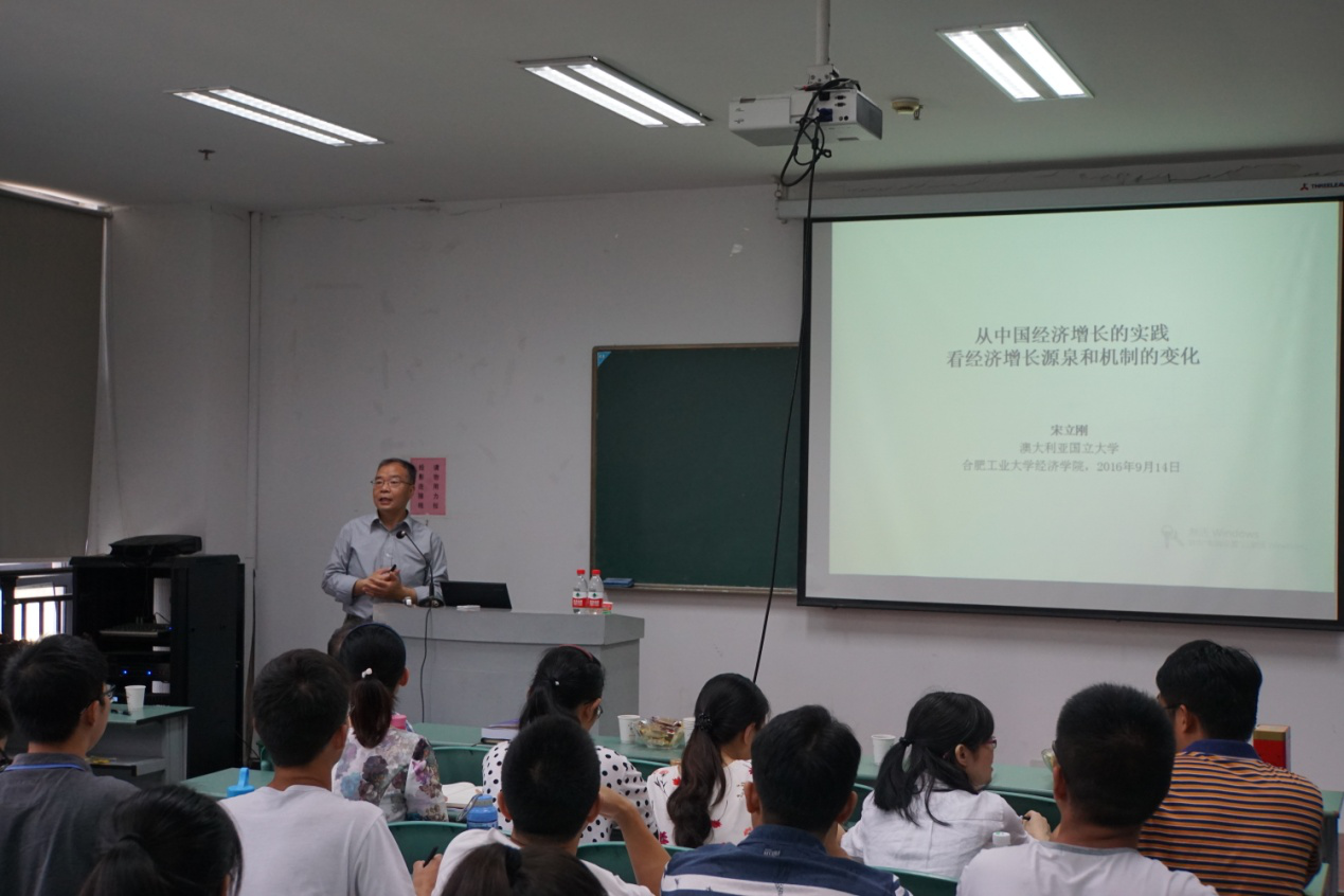 • 2016年9月14日上午九点半,澳大利亚国立大学克劳福德公共政策学院的博士生导师、中国经济项目负责人宋立刚教授,受球盟会qmhqmh球盟会亚博网址邀请,于球盟会qmh翡翠湖校区建筑艺术馆118室,以“从中国经济增长的实践看经济增长源泉与机制的变化”为主题作学术报告。本次报告会由qmh球盟会亚博网址院长吴华清教授主持,晋盛武教授、张先锋教授、陶爱萍教授和学院教师与研究生参加了本次报告会。