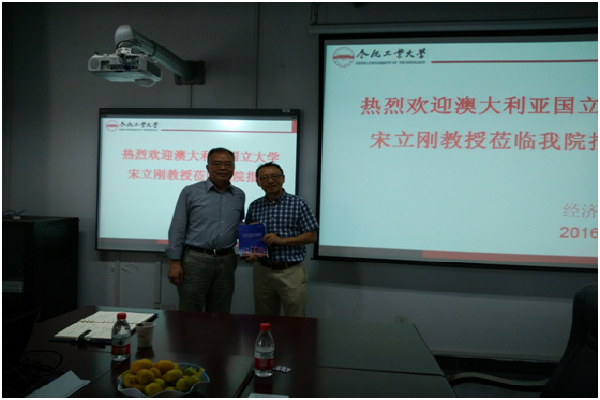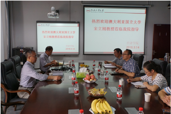 座谈会上,宋教授和qmh球盟会亚博网址教师就当今全球经济发展和学术研究中的热点问题进行了积极的互动和热烈的讨论,并对未来中国经济发展走势和学术研究的国际前沿等达成了一定的共识。座谈会后,宋教授还向学院赠送了他的2016年的最新学术成果“ China's new sources of economic growth: reform, resources and climate change”。宋教授的来访为推动球盟会qmhqmh球盟会亚博网址与澳大利亚国立大学深入合作奠定了坚实的基础。