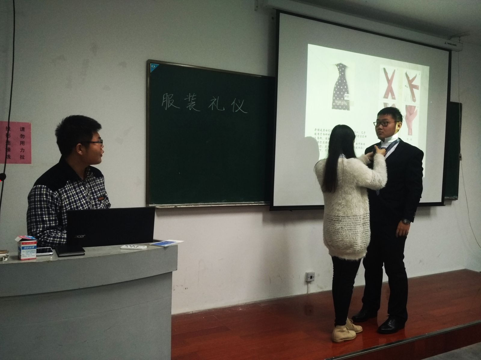 为提高大学生的礼仪修养,了解基本的礼仪原则,使得同学们在自我认知、内心素养及外在形象等方面, 从内到外获得全面提升,10月15日晚七点,qmh球盟会亚博网址学生会阳光心理中心在建艺馆121成功举办了“BBC礼仪培训——公关礼仪培训”的活动。