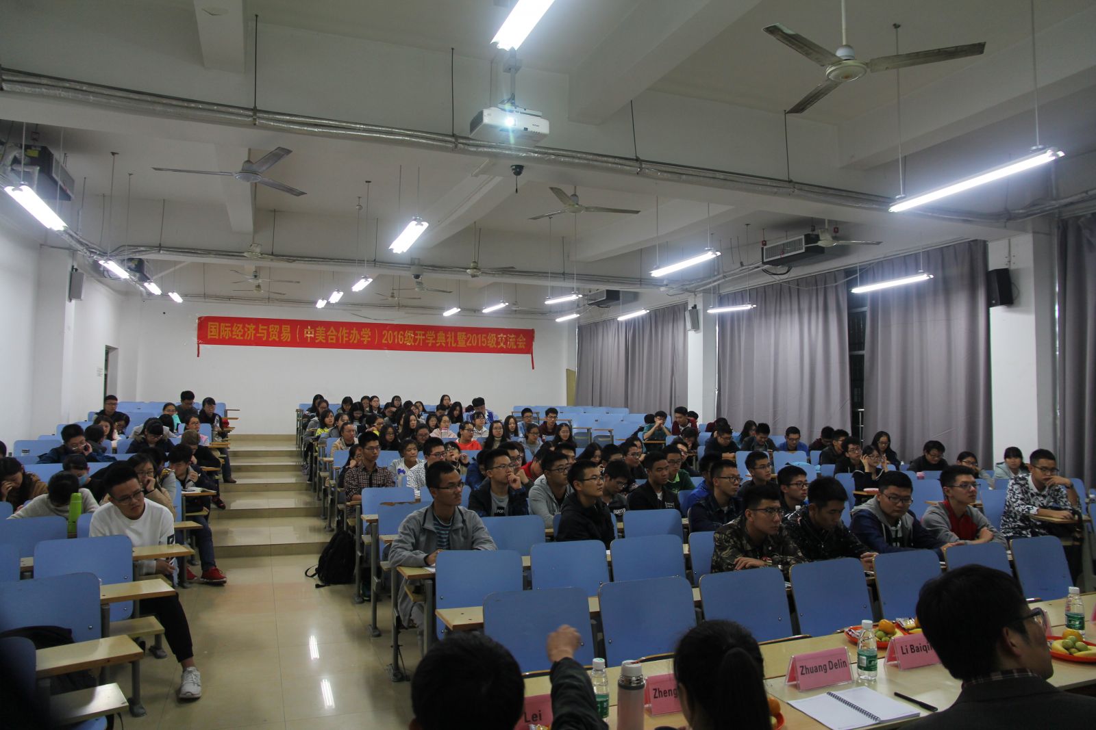 2016年10月27日19:30在翡翠湖校区3号教学楼206教室举行了国际经济与贸易(中美合作办学)2016级开学典礼暨2015级交流会。出席本次活动的美国克拉克大学代表有国际项目副院长Amy Daly Gardner、语言文化学院副院长James Raby、中国项目部主任李柏庆。qmh球盟会亚博网址院国际合作办公室主任庄德林、副主任郑园琴,16级学生辅导员雷磊也出席了此次活动。此次活动由qmh球盟会亚博网址国际合作办公室副主任郑园琴主持。