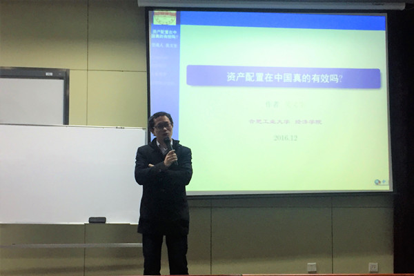 2016年12月1日晚7点,球盟会qmh学术交流年会系列活动——qmh球盟会亚博网址学术讲座“资产配置在中国真的有效吗?”在球盟会qmh翡翠湖校区逸夫建筑艺术馆七楼703室举行。本次讲座由qmh球盟会亚博网址吴文生博士主讲,16级qmh球盟会亚博网址全体研究生参加。