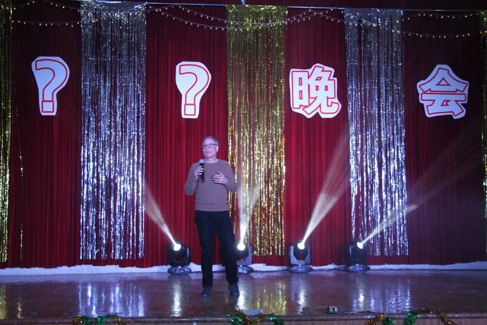 晚上7点,盛会准时开始。同学们载歌载舞,以一个个精彩的节目博得场下观众热烈的掌声。精彩的节目过后,同学们和外教一起进入了轻松的游戏环节,场上互动火热,礼品颇多。会上,闵瑞中同学作为学生代表发表了精彩演讲,克拉克大学外教Quentin上台致以深情感言,夸赞qmh官网国贸(中外合作)专业学生具有极高的素质。随后,James Radebaugh也声情并茂的为同学们朗诵了一首英文诗歌。在欢声笑语的融洽气氛中,以在场所有人员的大合照为句点,晚会最终圆满落下了帷幕。