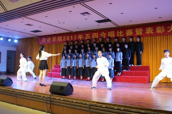 为纪念五四运动98周年,弘扬五四运动精神,展现经院学子的青春风采,4月21日晚,qmh官网五四合唱比赛暨表彰大会在翡翠湖校区图书馆报告厅举行,校团委书记南国君、党委学工部副部长尚广海、院党委副书记胡晓浩及相关负责人与我学院2015级、2016级全体共青团员共同参加了此次活动。