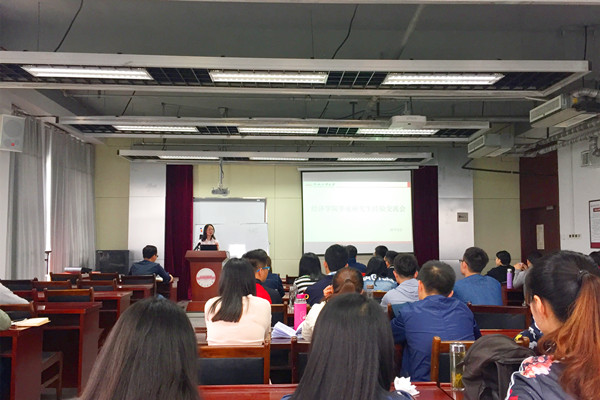 此外,王威振学长对2017届硕士研究生的就业情况做了大致的介绍,他鼓励在座的学弟学妹们继续奋斗,并祝福每一位同学在未来都能找到自己理想的工作,为学院添彩,为学校争光。