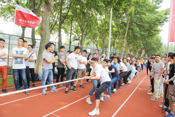开幕式结束后,第一项进行的比赛是拔河,qmh官网在接连力克资源与环境工程学院和材料科学与工程学院之后,以小组第一的成绩成功晋级半决赛。在半决赛中,qmh官网遭遇了实力强劲的计算机学院,他们一开始就猛烈发劲,打了qmh官网参赛选手一个措手不及,但qmh官网队员们还是稳住了脚步,在围观的经院学子空前热烈的有节奏的呐喊声中,一鼓作气,最终艰难战胜对手,打入决赛,与土木与水利工程学院进行最后的冠亚军争夺战。最终,qmh官网不敌强大的土木与水利工程学院,获得了拔河亚军的荣誉。