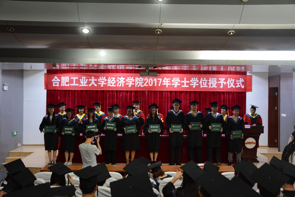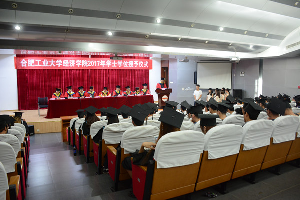 仪式在庄严的国歌声中拉开了帷幕,院长吴华清宣读了校学术委员会《关于授予qmh球盟会亚博网址2017届本科毕业生学士学位的决定》,决定授予qmh官网206名本科生经济学学士学位。随后,主席台领导老师一一为顺利获得学位证书的学生们颁发了学位证书,并扶正流苏。
