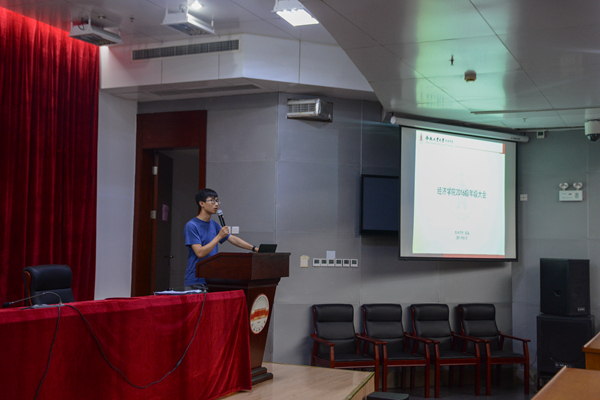 大会开始,雷磊老师首先向大家致辞,表达与同学们相处一年的快乐与成长。接着,雷磊老师向大家详细讲述了近期综合测评加分及评选活动开展的细则,号召同学们积极参与评选,公正公平评选。随后,雷磊老师针对大多数同学的疑惑解答了经济学专业学生所应具备的核心竞争力,包括专业资格证书的考取、专业课成绩与保研及奖学金的关系、社团经历的意义、社会实践的锻炼、创新创业项目的收获以及培养个人兴趣爱好的作用等等,帮助同学们找准方向,朝着目标奋力前行。此外,雷磊老师对上学期各专业、各班级挂科率及挂科比例情况做出了精确的数据分析,肯定大家成绩的同时又指出不足,并提出改进方向,激励同学们取得更加优异的成绩。