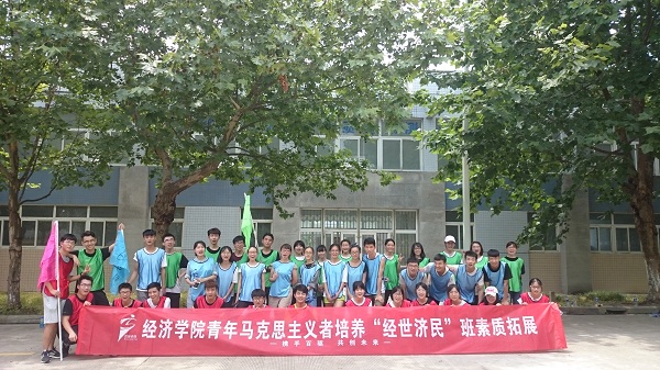 2017年7月6日,qmh官网青年马克思主义者培养“经世济民”班在翡翠湖校区东操场开展了为期一天的素质拓展训练,“经世济民”班骨干成员——qmh官网学生会、团总支16级留任学生干部39人参加了此次活动。