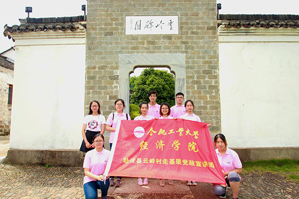 在宣城泾县云岭,同学们参观了新四军旧部遗址和叶挺将军故居,深入了解了一段战火纷飞的历史。通过重温入团誓词,表达了对这段革命历史的崇高敬意。在云岭村,同学们通过与当地村委成员的接触,了解了云岭村的基本状况,并且进行入户宣讲,通过与村民的交谈和政策宣讲,了解到村民对政府基于农村学生的教育政策等比较陌生,大多数人对政府的养老政策和最低生活保障政策比较熟悉,对政府加强农村基础设施建设的诸多举措表示欢迎。