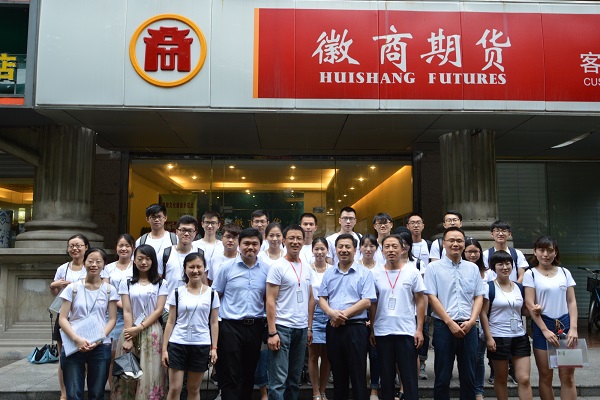 7月7日,qmh官网2015和2016级金融学专业硕士班27名同学前往qmh官网MF中心挂牌实习基地徽商期货公司开展游学活动,徽商期货董事长吴国华、MF中心张根文主任、研究生班主任李世军老师现场参加本次活动。