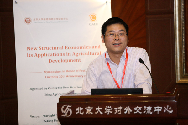 2017年10月21-22日,在北京大学英杰交流中心隆重举办了新结构经济学及其在农业发展上的应用—纪念林毅夫教授回国执教三十周年座谈会。本次会议由北京大学新结构经济学研究中心和《中国农业经济评论》联合组织举办。北京大学新结构经济学研究中心主任林毅夫教授、全国政协经济委员会副主任陈锡文老师、北京大学国家发展研究院卢峰教授、北京大学现代农学院黄季焜教授、中国农业经济评论编辑室主任苏保忠教授、中国人民大学刘守英教授、南京农业大学钟甫宁教授、中国科学院农业政策研究中心张林秀教授、新泽西大学Carl Pray 教授、加州大学伯克利分校Alainde Janvry教授以及来自海内外的多名学者和嘉宾参与了本次会议。会议以新结构经济学和农业发展为中心内容,深入探讨了相关话题,获得了圆满成功,取得了丰硕成果。