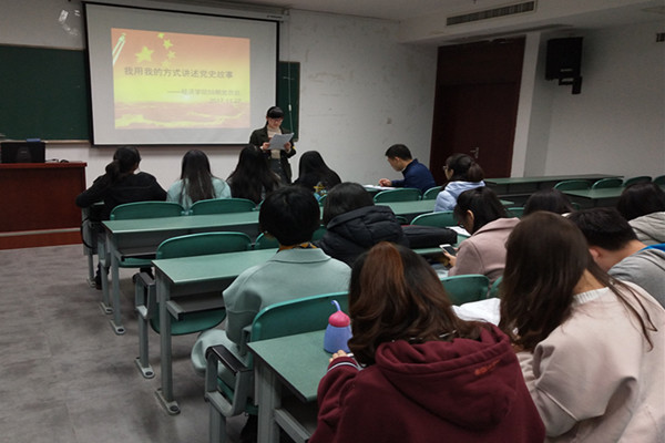 2017年11月27日晚7点,为追忆党史,立足当前,展望未来,传承党员信念,继承党员精神,qmh球盟会亚博网址第58期党员班全体成员在建艺馆121举行“我用我的方式讲述党史故事”——述说党史实践活动。