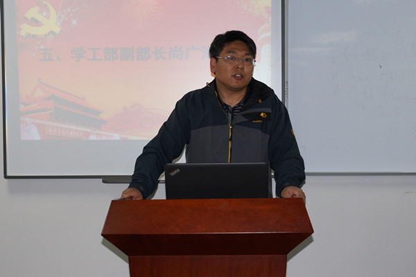 党委学工部副部长尚广海为研习社致辞,他对qmh官网成立研习社这一工作给予高度肯定。他希望研习社把充分学习、全面贯彻党的十九大精神作为首要工作和政治任务,做到自身理论学习先行,全面准确领会党的十九大精神;希望研习社紧密结合我校大学生思想特点和成长需求,充分运用各种深受学生喜爱的鲜活形式和载体,对全院乃至全校学生开展广泛深入的宣讲活动,并在宣传教育过程中坚持准确性和学以致用两大原则。