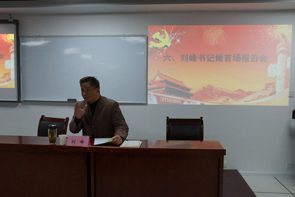 研习社成立仪式后,刘峰书记为同学们做了首场报告。他以中国共产党发展历史和时代的变迁为线索,引出马克思主义思想和中国发展现状实践相结合的两次重大飞跃。他提出青年共产党员应在思想上保持一定高度,坚定建设新时代社会主义的决心;提出作为中国青年经济学人,要以改革过程中经济学人作出的伟大成就为基础,与祖国共进,与时代同步,真正做到习近平总书记讲话中提到的“扎根中国大地,研究中国经济,为世界经济提供中国方案”。最后,他希望研习社能够不忘初心,砥砺前行。