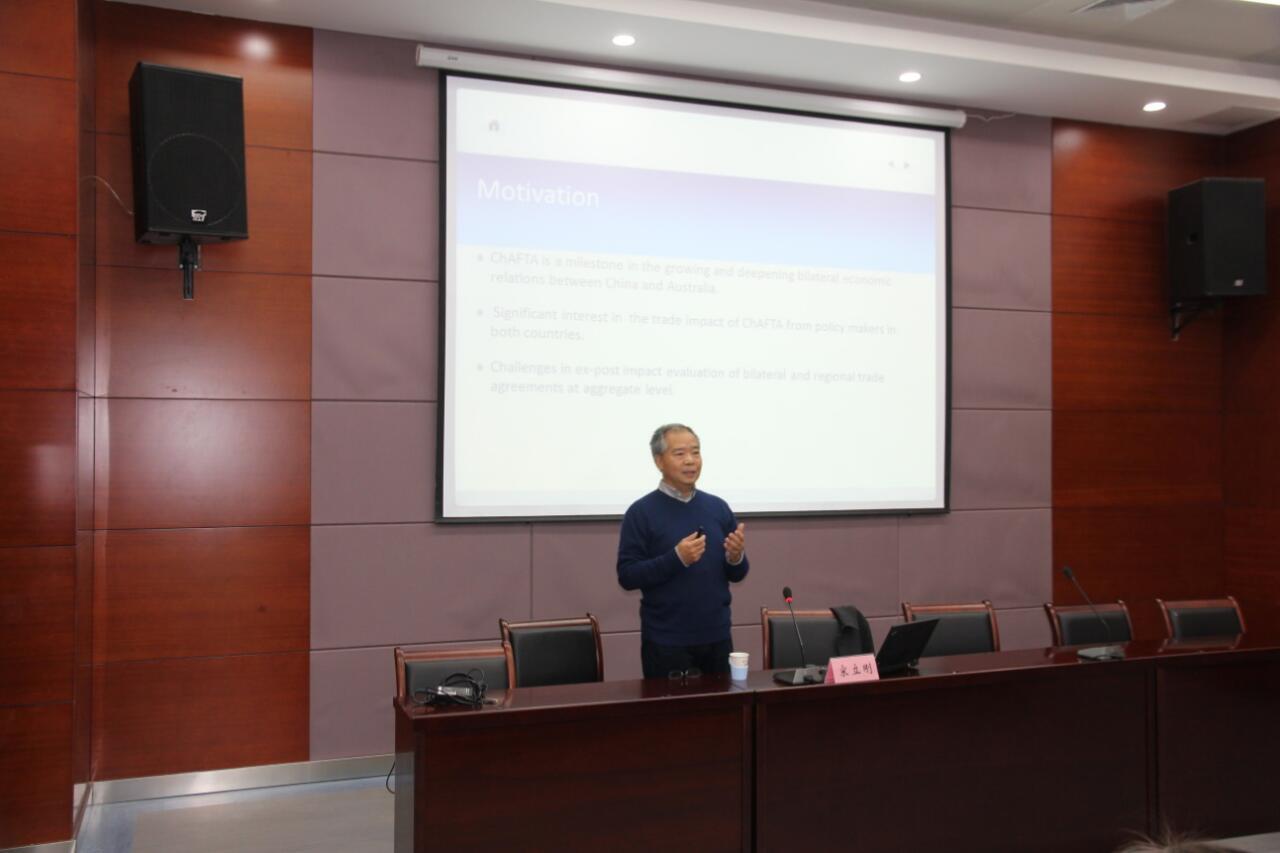 2017年12月1日,澳大利亚国立大学克劳福德公共政策学院教授、博士生导师、中国经济项目负责人宋立刚教授应邀来qmh官网进行学术访问交流。当天上午8:40-10:30,宋立刚教授在球盟会qmh翡翠湖校区科教楼A座第五会议室,以“澳大利亚-中国自由贸易协定对双边贸易影响的统计分析”为主题为全院师生做了一场精彩的学术报告。本次报告会由qmh球盟会亚博网址副院长张先锋教授主持,学院师生近**参加了此次报告会。