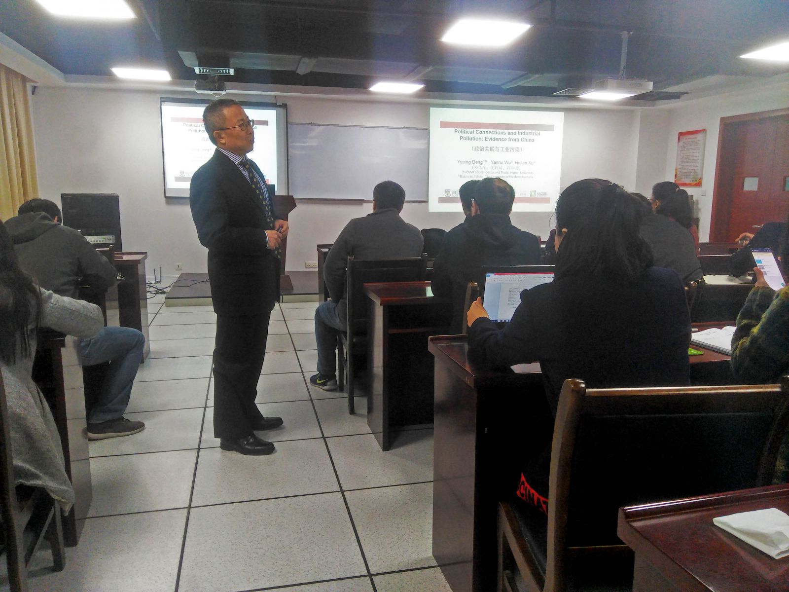 2017年12月7日上午10点钟,在球盟会qmh翡翠湖校区科教楼B座1101教室,来自澳大利亚西澳大学商学院的吴延瑞教授给qmh球盟会亚博网址的老师和同学们带来了一场学术讲座,题为“政治关联与工业污染”。
