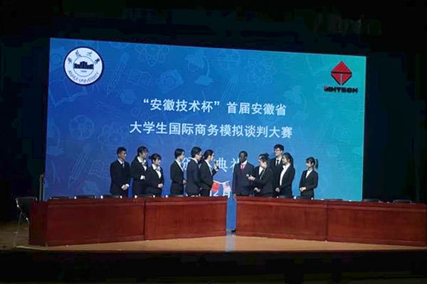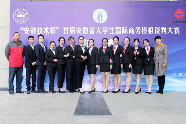 12月9日,由安徽省教育厅主办、安徽大学承办的“安徽技术杯”首届安徽省大学生国际商务模拟谈判大赛在安徽大学磬苑校区落下帷幕。此次大赛全省共有31所高校62支队伍参加。经过激烈的角逐,我校派出的Symphony(胡筱桐、张雅晨、张菱健、朱矜颖、徐雪明、宋寅寅,指导老师:刘晴、李欣婷)和Titan(许红丽、杨宇欣、陶晨阳、杨婷婷、白天霖、陈佳劼,指导老师:谢众、李欣婷)两支团队在决赛中分别获得A、B组冠军,荣获一等奖。