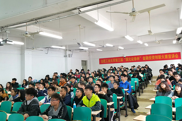 “国元证券杯”金融投资策略大赛是安徽省教育厅主办的省级学科竞赛,比赛旨在引导大学生树立科学的投资理念,培养金融创新精神和提高综合实践能力。球盟会qmh已经连续举办三届校内赛,比赛规模和影响力逐年增加。同时,本项比赛也是落实学校“立德树人、能力导向、创新创业”三位一体教育教学体系改革目标的具体举措。本此次宣讲会的成功举办不仅使同学们更加了解了大赛的内容和评分方式,也为大家如何准备比赛指明了方向,期待参赛选手在接下来的比赛中取得优异的成绩!