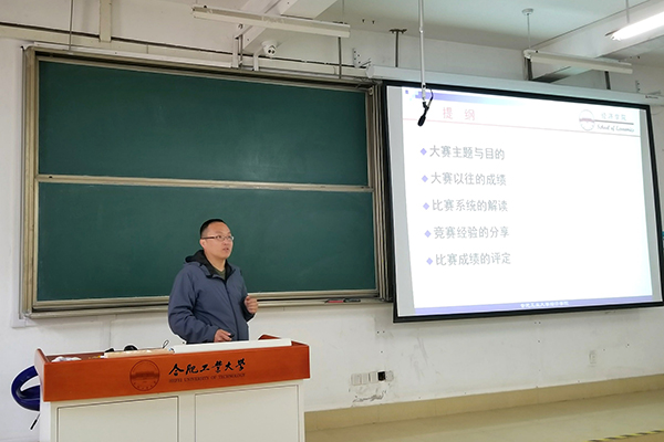 宣讲会上,王海涛老师首先向同学们展示了我校参加该项大赛的历届成绩,鼓励同学们积极参加学科竞赛。接着,王老师对比赛操作系统及团队报名注意事项进行了详细的解读,并向同学们分享了以往比赛的经验,强调了选对指导老师、加强团队协作和增加金融投资知识储备的重要性。然后王老师讲解了大赛成绩评定的构成以及决赛中成绩评定的准则,让同学们详细了解了评分的要点。最后是提问交流环节,同学们积极发言,王老师对同学们提出的问题都做了耐心且详细的解答。王老师详细的介绍和对比赛规则的阐述,得到同学们的高度认可并给予热烈的掌声。
