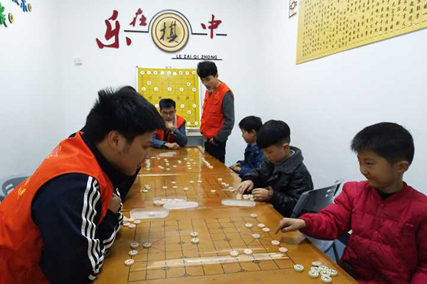 摄影课堂过后是下象棋活动,志愿者们陪伴孩子们“乐在棋中”。象棋是一种益智游戏,同时也是我国传统的体育竞技项目,通过下象棋能够使孩子们在娱乐的同时善于思考,培养大家的发散思维。在掌握了简单的布局技巧后,大家两人一组开始对弈,“战局”十分激烈。一攻一守之间,孩子们也有了更多的思考与进步。最后,志愿者们还帮助社区整理了图书资料,整场活动充实而又富有意义。