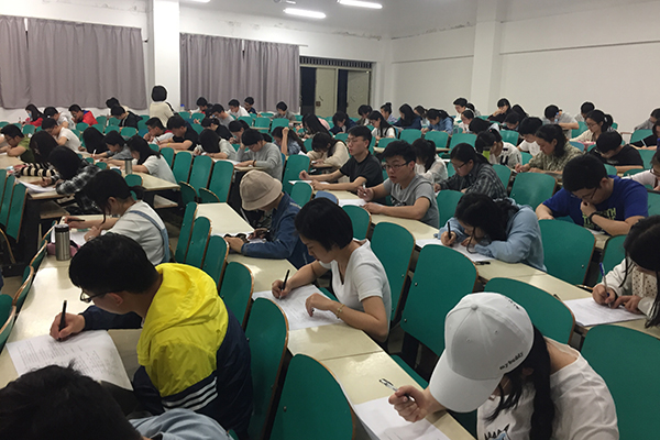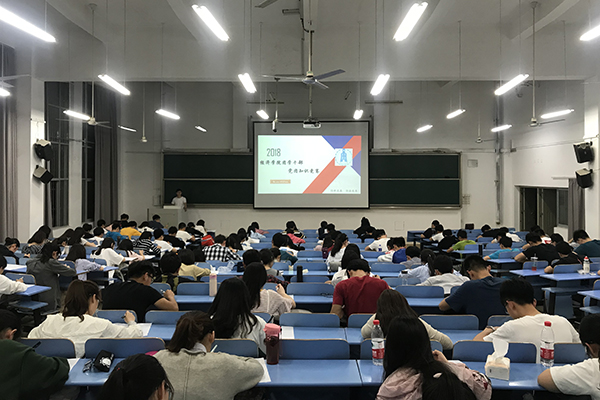 为了深入学习贯彻党的十九大精神,引导广大青年学生深刻领会习近平新时代中国特色社会主义思想的丰富内涵,进一步提升大家的党团理论知识水平,4月20日晚19:00,qmh球盟会亚博网址团学干部党团知识竞赛在翡翠湖校区二教101和201教室举行。学院学生党员、发展对象、入党积极分子、理论研习社成员以及团学干部300余名同学参加考试,本科生辅导员老师到场监考。