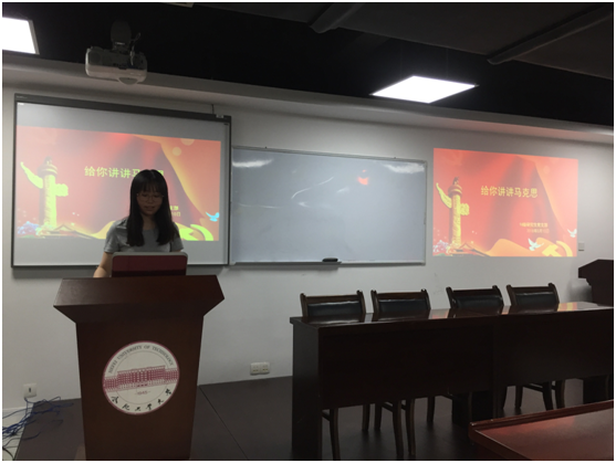 会议开始,赵如月同学带领大家一同观看了介绍伟人马克思的视频,全面介绍了马克思这位伟人的人生历程,让全体党员了解到了真实的马克思他的一生和伟大思想成果。随后几位同学依次上台给大家分享了他们所知道的关于马克思的小故事。