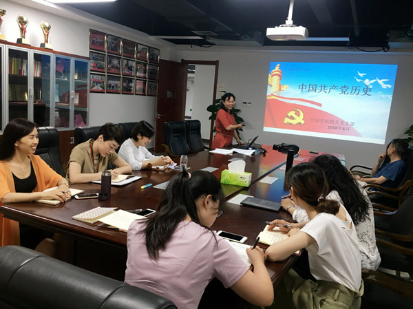 6月28日,机关党支部书记许红梅在党员活动室为支部成员讲党课,她首先阐述了学习党史的现实意义,然后和支部党员一起回顾了党的一大到十九大的发展史,列举大量的历史事实和数据,阐述了中国共产党人对理想信念的坚持、坚守与坚定追求。