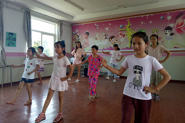 7月15日,团队成员来到滁州市章广中心小学,与该校部分教职工进行了座谈。章广中心小学的孩子们大多都是留守儿童,在座谈过程中,团队成员了解了留守儿童在学校的学习、生活状况,也了解到当地政府出台了相应的政策去帮扶留守儿童。调研正值暑假期间,但仍有老师在校组织孩子们们开展形式多样的课程活动,如二胡教学、葫芦丝教学以及舞蹈教学等,孩子们也兴趣高昂,乐于学习。在与老师进行深入交流时,团队成员也了解到部分留守儿童在心理及生活方面存在一些问题。