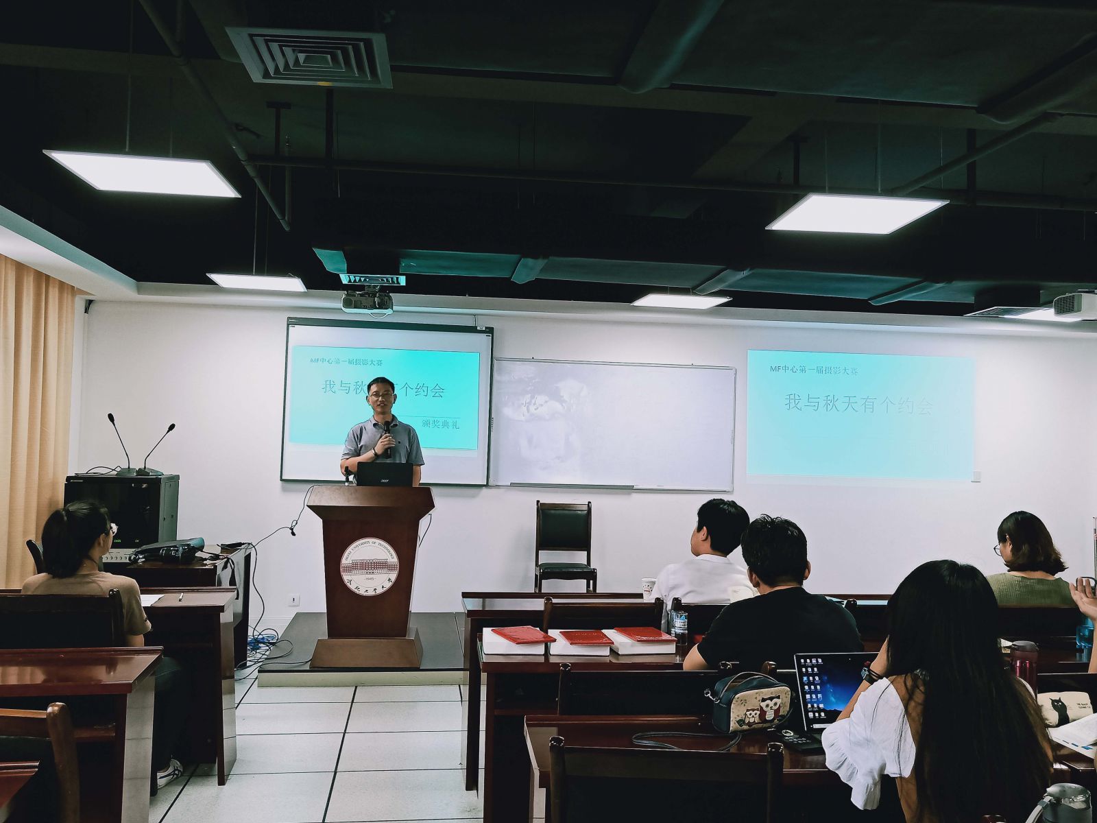 2018年9月12日下午2点30分,MF中心第一届“我和秋天有个约会”摄影大赛颁奖典礼在翡翠湖校区科教楼B座1101会议室举行。此次摄影大赛旨在活跃MF中心的文化气氛,丰富学生课余生活,促进MF中心文化的繁荣与发展。颁奖典礼由2018级金融专业的薛琪凡同学主持,出席本次颁奖典礼的有MF中心主任张根文老师,MF中心副主任张琼老师,渤海银行合肥分行人力资源部经理李应芳以及qmh球盟会亚博网址2017和2018级金融专硕全体学生。