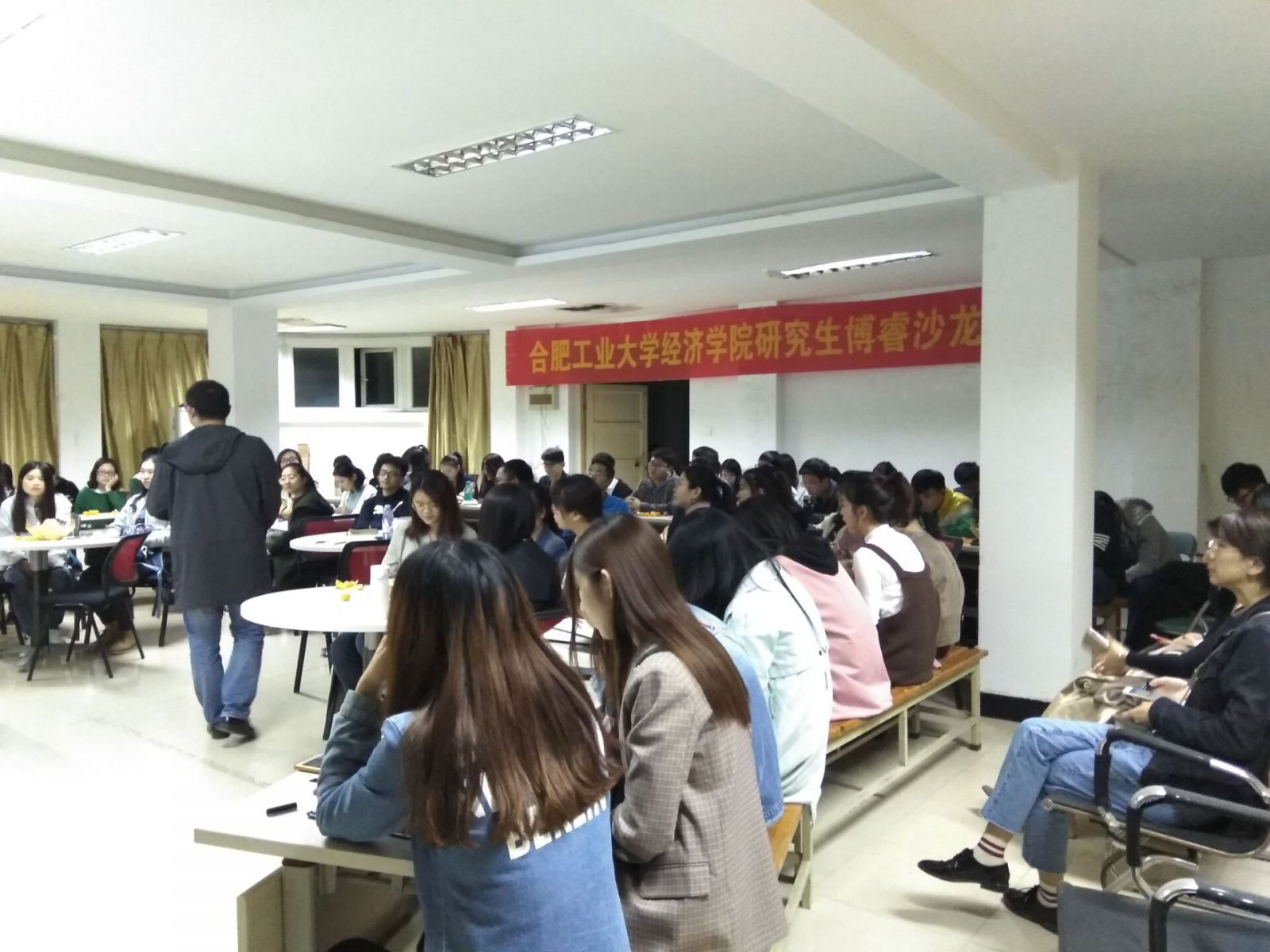 2018年10月23日晚七点半,在翡翠湖校区八号楼研究生活动室,qmh球盟会亚博网址成功举办了第138期博睿沙龙活动。qmh球盟会亚博网址蒯鹏老师作为此次活动嘉宾为同学们带来了一场名为“资源环境经济学研究前沿”的学术讲座。