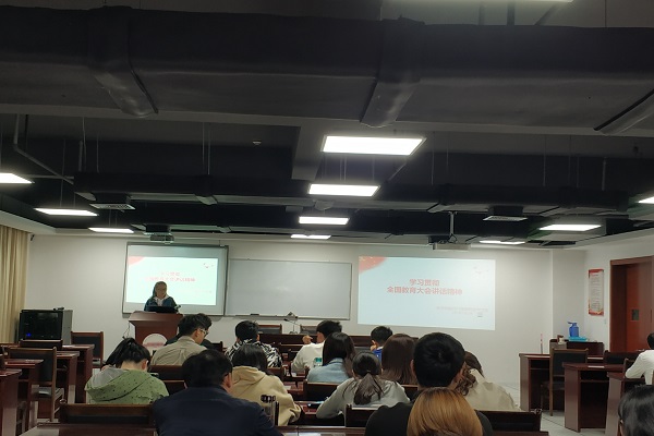 大会开始,胡甜甜同志汇报了此次党课支部党员与会的情况。随后,会议正式开始。首先,胡甜甜支部书记对教育大会进行简要介绍,并深刻阐释大会意义。于9月10日在北京举行的此次会议对中国教育事业发展具有历史性、划时代的里程碑意义。其次,对习总书记重要讲话进行全文解读,并总结习总书记谈教育发展的十大金句。教育工作要以“凝聚人心、完善人格、开发人力、培育人才、造福人民”为目标,实践“9个坚持”新观点,不断使教育同党和国家事业发展要求相适应,把培养社会主义建设者和接班人作为根本任务。最后,要求我们全面贯彻落实大会精神,把握工作要求和工作要求,做好“四个结合”,“开展四个行动”,明确衡量标准,健全五个清单。