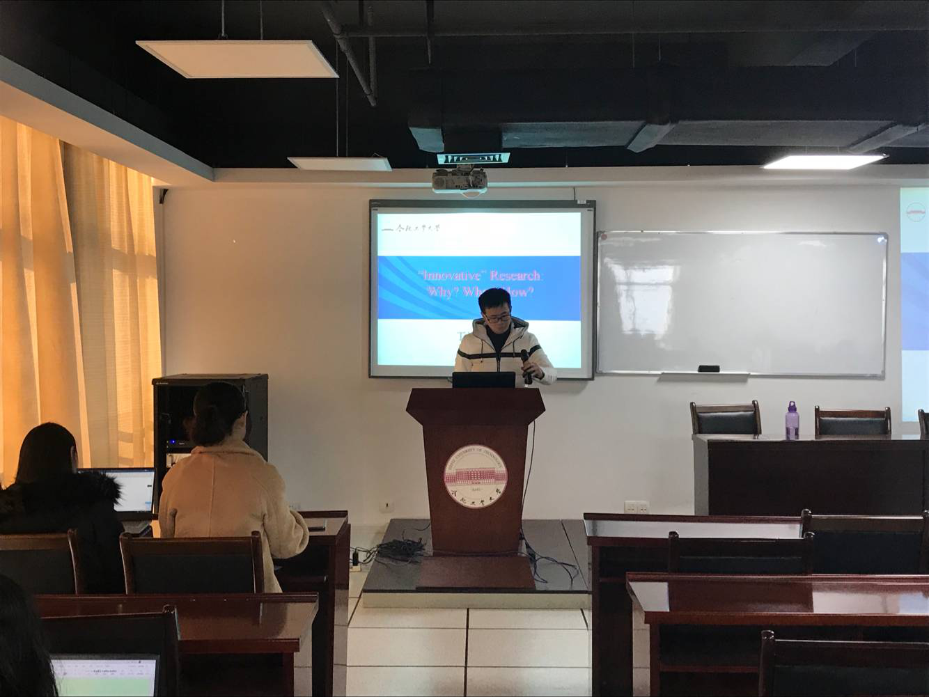 2018年11月23日早上10点,球盟会qmhqmh球盟会亚博网址丁涛老师在翡翠湖校区科教B座1101会议室为2018级研究生做了一场学术报告,本次报告的主题是“Innovative Research :Why?What? How?”。