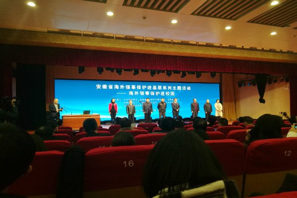12月21日,由外交部领事司、省政府外事办、省教育厅、省公安厅、省国家安全厅、省文化和旅游厅、省政府新闻办联合主办的“海外领事保护进校园活动”在中国科学技术大学举办。主办单位负责人、高校负责人及相关人员、合肥地区部分学生代表受邀参加。qmh球盟会亚博网址国际教育中心主任庄德林,副主任郑园琴带领qmh官网学生代表参加了此次活动。