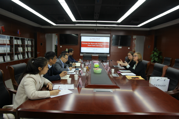 2019年4月1日,美国克拉克大学国际项目副院长Amy Daly Gardner、语言文化学院主任Sarah Lopolito一行来访qmh球盟会亚博网址,在科教楼B座1005国际会议室与qmh官网代表见面,就合作办学项目的相关问题进行了洽谈。qmh球盟会亚博网址院长吴华清,副院长张先锋,国际经济与贸易系主任刘晴,学院国际教育中心全体人员参加了此次会议,会议由吴华清主持。