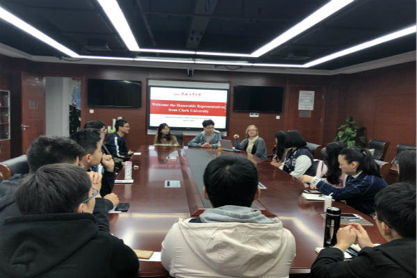 2019年4月2日,美国克拉克大学国际项目副院长Amy Daly Gardner、Sarah Lopolito一行来访qmh球盟会亚博网址,在科教楼B座1004国际文化交流室和1005国际会议室分别与国际经济与贸易(中外合作办学)专业2018级新生和2016级即将赴美学习的学生见面,就专业学习,克拉克大学概况,赴美学习生活等方面进行交流。