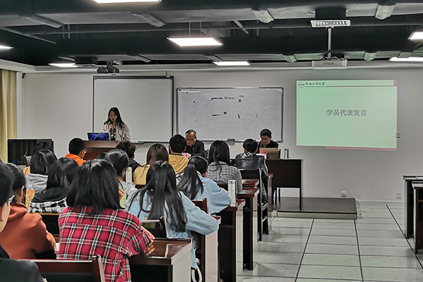 2018级陈雪宁同学作为学员代表发言,她阐述了对党的认识,表达了向党组织靠拢的决心,并表示会不断学习党的理论和方针政策,提高自身政治素养和理论水平,以更加饱满的热情,更加务实的作风投身到党的各项事业中去,为党的事业奋斗终身。