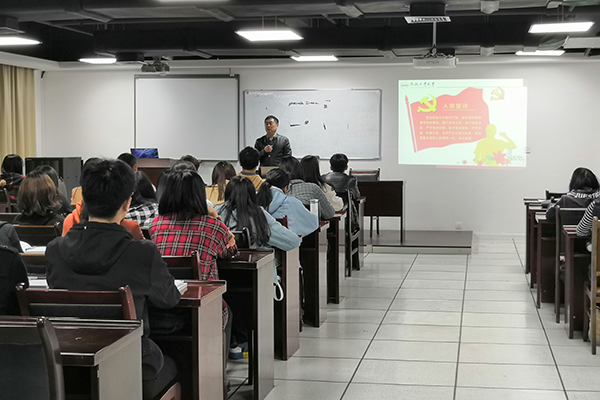 开班典礼结束后,院党委书记李金华为学员们进行了第一次集中授课,主题为:由入党誓词谈起,端正入党动机,探问自己入党初心。李书记从入党誓词谈起,从纪律、忠诚和理想信念三个方面向全体学员阐释了为什么要端正入党动机,怎样端正入党动机,以及入党之后应如何去做这几个问题。李书记指出,入党誓词虽历经五个时期的发展成熟,但“永不叛党”的誓言一直未变,因此党员要对党无限忠诚,把党的事业作为一生的追求。李书记强调,理想信念是党员的“钙”,作为入党积极分子要坚定理想信念,端正入党动机,入党不是短期的激动,而是长期的信念坚持,加入党组织应该是内心自愿选择、主动要求进步的结果。 最后,李书记勉励全体学员要好学上进,不断提高自身修养,日后努力报效祖国。