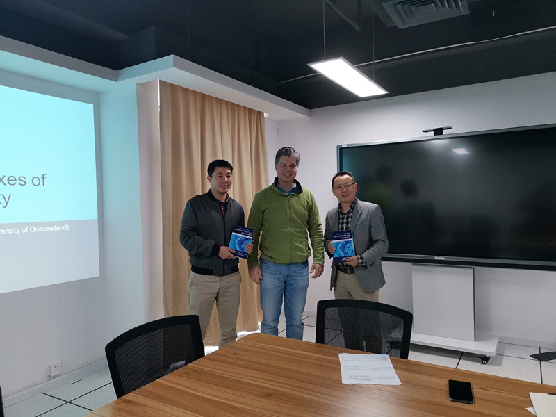 讲座结束后,作为对本次来访的感谢,Valentin Zelenyuk教授将其最新著作《Measurement of Productivity and Efficiency Theory and Practice》(将于剑桥大学出版社出版)赠予qmh官网吴华清教授和周志翔老师并合影留念。