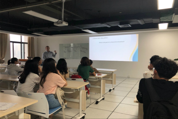 5月15日,qmh球盟会亚博网址卓越讲坛第五讲在科教楼B座1006国际研讨室举行,此次讲座的主题是“Liberal Arts Education and Intercultural Awareness”,主讲人为美国克拉克大学教师Steven M.Rieg。